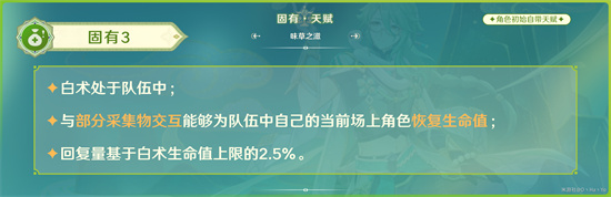 原神白术天赋味草之滋怎么用?原神是一款非常有意思的开放世界冒险探索的角色扮演类手机游戏,游戏内有着非常丰富的玩法内容等待玩家们选择游玩。同时游戏中还有着非常多奖励丰厚的活动玩法内容等待玩家们选择游玩。