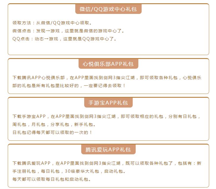剑网3指尖江湖礼包兑换 剑网3手游游戏礼包大全,剑网3指尖江湖是西山居的游戏,但是是腾讯代发行的,所以游戏里的礼包基本上都是腾讯的,但是腾讯的礼包往往藏得特别深,下面给大家汇总了一下剑3手游的全部礼包兑换方法。腾讯爱玩APP礼包下载腾讯爱玩APP,在APP里找到剑网3...