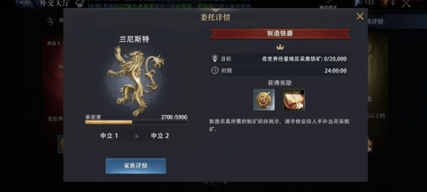 权力的游戏凛冬将至外交任务怎么做?速刷外交任务攻略,权力的游戏凛冬将至外交任务怎么做?外交任务就是五大任务之一,和其他任务也没什么区别,只是在完成任务方面可能比较繁琐,下面给大家说说如何速刷外交任务。权力的游戏凛冬将至外交任务怎么做?在游戏中除了对新手期的发展有过硬要求之...