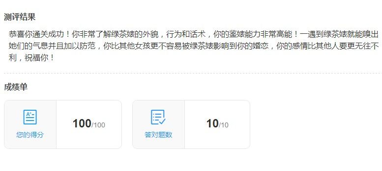 你是否真的能识破绿茶婊的招术答案大全:测试绿茶婊入口地址分享,你是否真的能识破绿茶婊的招术在哪玩?这个游戏能测试出身边的绿茶婊,是一个非常有趣的小游戏,一系列的问题能帮你判断你是否具有鉴定绿茶婊的能力,关于你是否真的能识破绿茶婊的招术的正确答案小编也为大家分享在下方。你是否真的能识...
