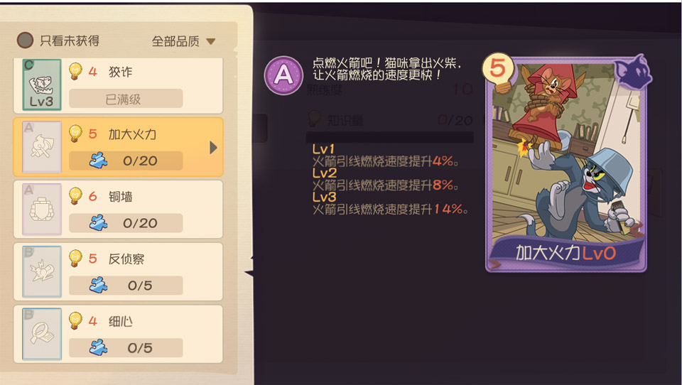 猫和老鼠手游新增知识卡解读 加大火力、求生欲等新知识卡介绍,猫和老鼠手游前几天更新之后,增加了几张全新的知识卡,猫咪和老鼠阵营的知识卡都有增加,整的来说这次是猫咪增强的比较多,下面给给大家挨个介绍新增知识卡的效果。围追堵截全面升级在《猫和老鼠》中,汤姆一方担当了追捕的角色,本次更...