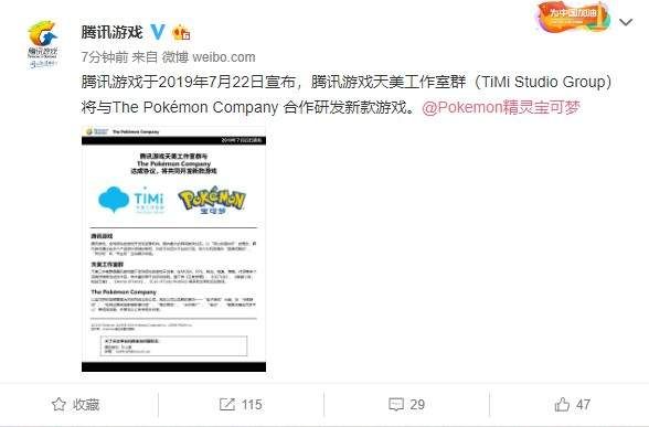 腾讯天美工作室与宝可梦公司达成合作 共同开发新游戏,腾讯游戏昨天(7月22日)通过官方微博宣布,旗下天美工作室群(TiMiStudioGroup)将于日本ThePokémonCompany合作,共同研发新款游戏,目前官方尚未透露任何有关新作的情报。天美工作室群是腾讯游戏旗...