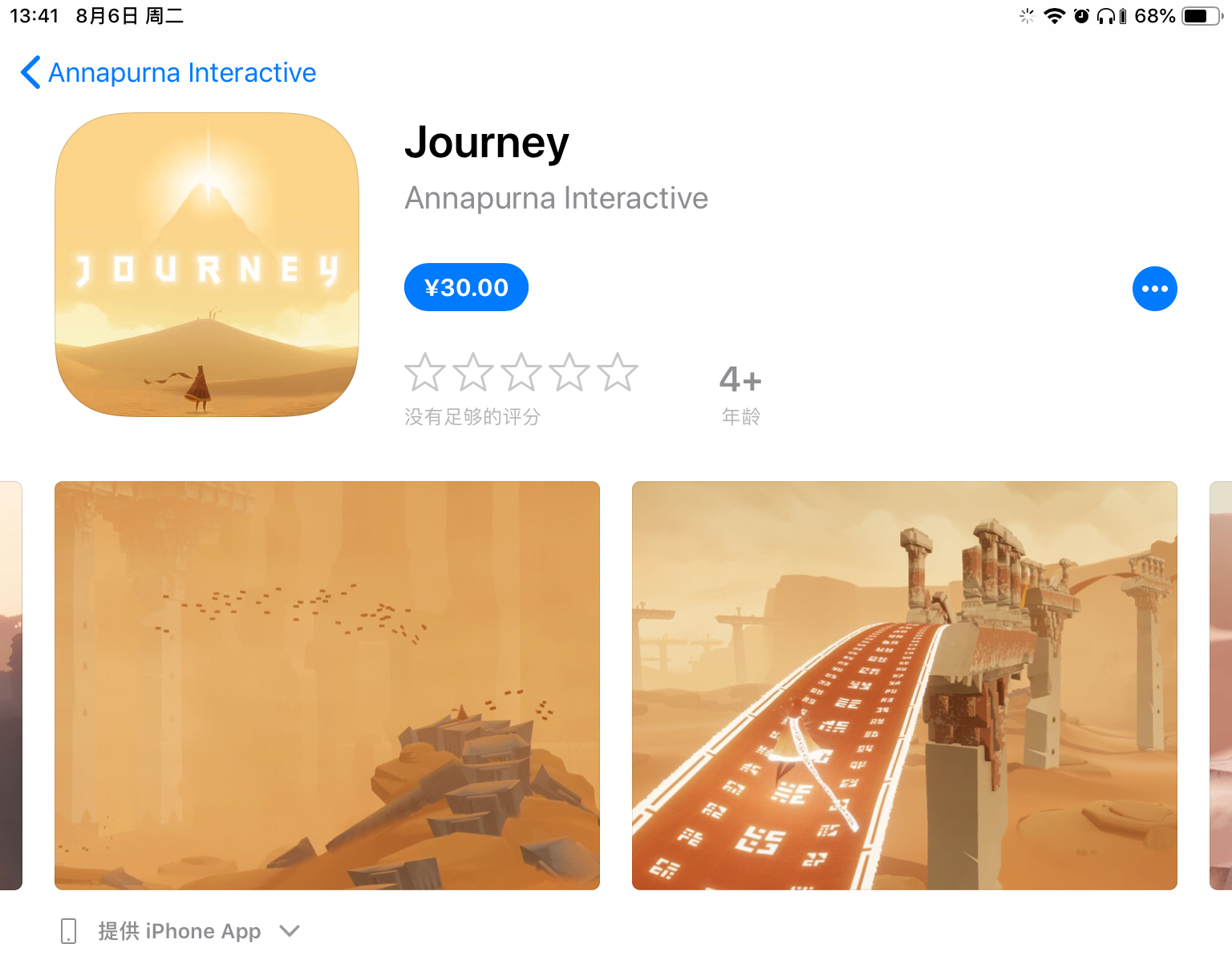 陈星汉《风之旅人》现已登陆iOS平台 售价30元,今天(8月6日)陈星汉的代表作《风之旅人》已经正式在AppStore上线了,iOS系统的用户现在就可以下载这款饱受国内外玩家好评的唯美作品了。《风之旅人》iOS版的售价为30元,喜欢的朋友可以前往购买。《风之旅人》App...