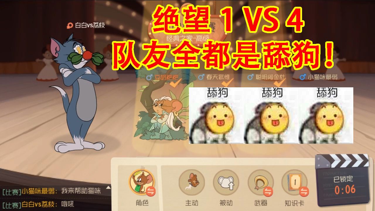 猫和老鼠:最绝望的对抗!队友全都是舔狗,最终结果大快人心!,今天一大早就排了一局匹配,这个海盗杰瑞说要帮猫咪,可能是看猫是个妹子想当舔狗,一开局就送机械鼠真是干得漂亮,看来这舔狗的位置是想坐实了。在杂物间推奶酪的时候猫来了我把猫往上引,这个海盗好像没有帮忙推,炸药堆快爆了&nbs...