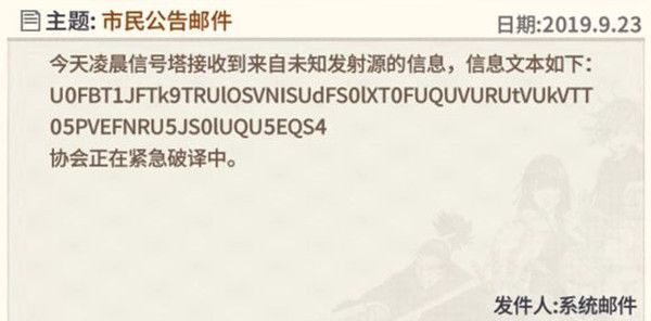 一拳超人最强之男神秘邮件是什么?公告神秘邮件代码说明,一拳超人最强之男今天在邮箱里的官方神秘邮件是什么?打开之后一堆乱码,那么这次的神秘邮件代表着什么呢?让小编给大家详细说一说。今天有不少玩家一登入就发现接受到了一封特殊的包含了神秘信息文本的公告邮件,许多玩家都看出来了这应...