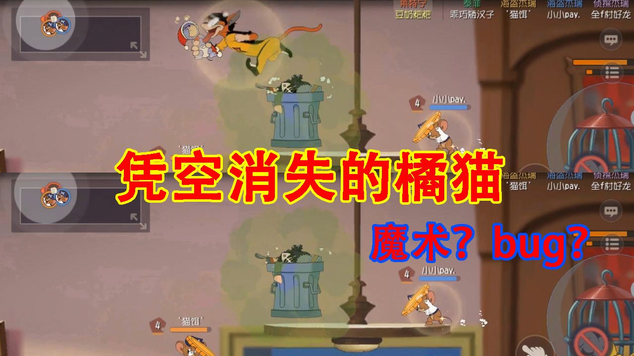 猫和老鼠:橘猫凭空消失,队友神秘失踪!烟花大作战还能这样玩?,猫和老鼠本来不打算再玩烟花大作战了,但是最近刷老鼠三S实在刷的头疼想报复路人,这个模式其实有个穿墙bug而且一直没有修复,现在顺便给大家演示一下,这局我不仅要赢还要让老鼠的游戏体验感极差,先随便扔炸弹,总能扔死一个,就拿...