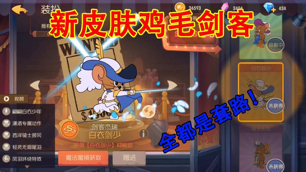 猫和老鼠:剑客杰瑞新S级鸡毛皮肤!一出S皮肤就加强,又是套路?,猫和老鼠来一起看看更新了啥,我期待已久的恶魔泰菲并没有上线,魔改版跑图模式也没有上线,但是上架了一个S级的剑客杰瑞皮肤,泰菲的S皮肤暂时下架(我毫无兴趣),这个新皮肤看起来其实也就这么回事儿,可能是我不太喜欢西洋剑客的风...