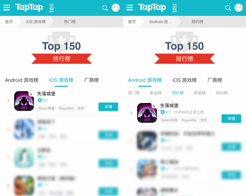 获苹果预订推荐,再登TapTap双榜第一!《失落城堡》火热预约中,Steam销量130万套,或年度最佳独立游戏提名的国产独立游戏精品《失落城堡》将于10月24日进行iOS与官方安卓公测。广受好评,TapTap预约双榜登顶作为年度最受期待的Roguelike动作联机爽游,《失落城堡》公测...