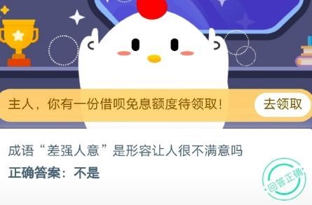 成语差强人意是形容让人很不满意吗?蚂蚁庄园10月20日今日答案,蚂蚁庄园10月20日小课堂的答案是什么?其中差强人意这个成语是形容什么的?今天刚刚更新的一些问题,小编会在下面分享正确答案,想要了解答案内容的玩家,可以和小编一起来看看,了解一下答题的详情。蚂蚁庄园10月20日今日答案今...