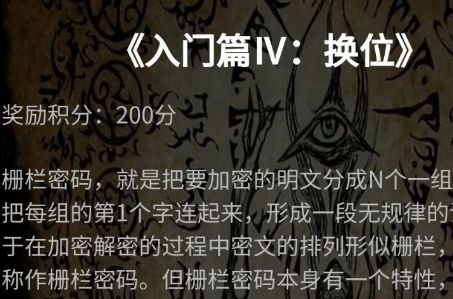 犯罪大师入门篇4换位答案是什么?换位答案详情一览,犯罪大师入门篇第四章的答案是什么?入门篇4换位答案已经全部都准备好了,从入题、破题到解析。每一个步骤都非常详细,看完之后你也能够了解其中的奥秘。以后碰到类似的谜题,自己也可以轻松的解开。栅栏密码,就是把要加密的明文分成N...