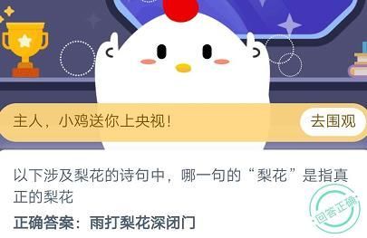 蚂蚁庄园11月5号答题答案是什么?以下涉及梨花的诗句中哪一句的梨花是指真正的梨花答案介绍,蚂蚁庄园11月5号答题问下面选项中的诗句哪一句描写的是真正的梨花。下面的两首诗句我们在上线的时候全部都学习过。而且每一首都是必须背诵的。现在好多小伙伴想必都忘记了吧。哪么小编就来分析一下这两句诗中的梨花,来帮大家回忆一下...