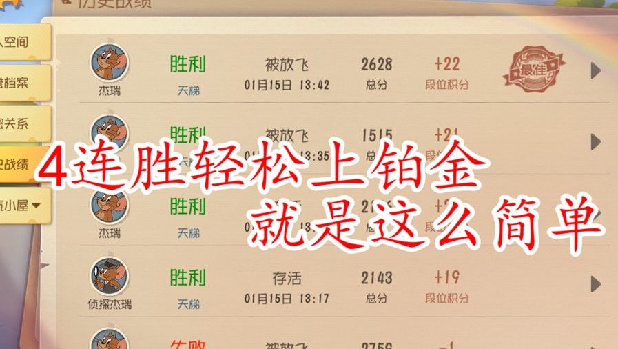 猫和老鼠:怎么轻轻松松上铂金?单排3连胜,果然单排最稳,猫和老鼠手游这个赛季感觉黄金段位没啥难度,就直接上分搞起了,没有开黑,毕竟有点怕,晋级赛也就那几把如果单排的话,上分感觉应该没啥问题的,毕竟意识就在这边摆着在,既然还是太空堡垒地图,那就更加没有问题了,杰瑞搞起。机械鼠的...