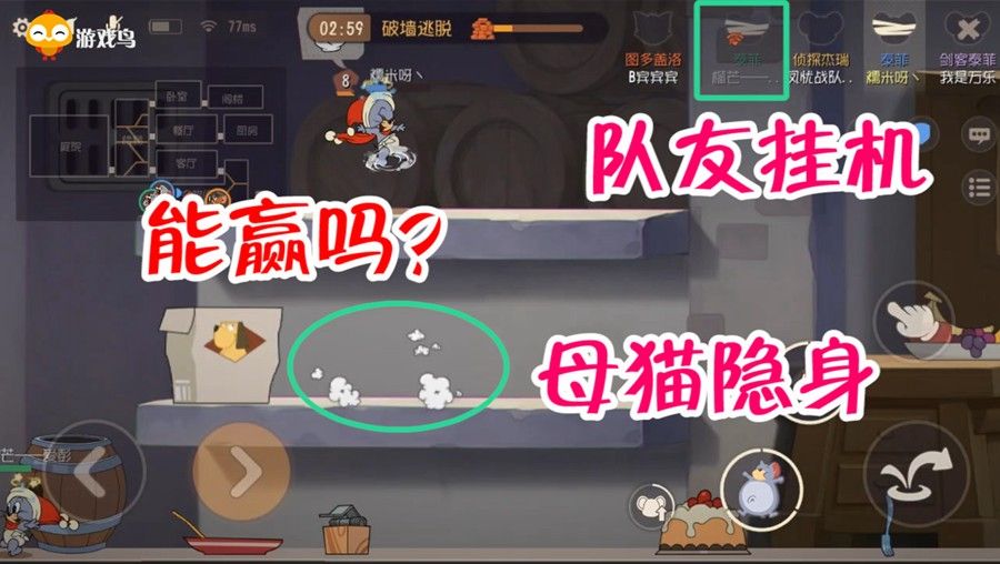 猫和老鼠:墙洞期队友挂机,泰菲和侦探能砸开墙洞,获得胜利吗,猫和老鼠手游这把三泰菲一侦探,剑客泰菲也是泰菲呀,只是职业不一样,侦察期被打爆两只机械鼠,只拿到一块经验蛋糕,关键对面还是只母猫,这就比较难受了。开局先来杂物间,奶酪才运到洞口母猫就来了,身边的道具捡起来砸一下,然后赶紧...