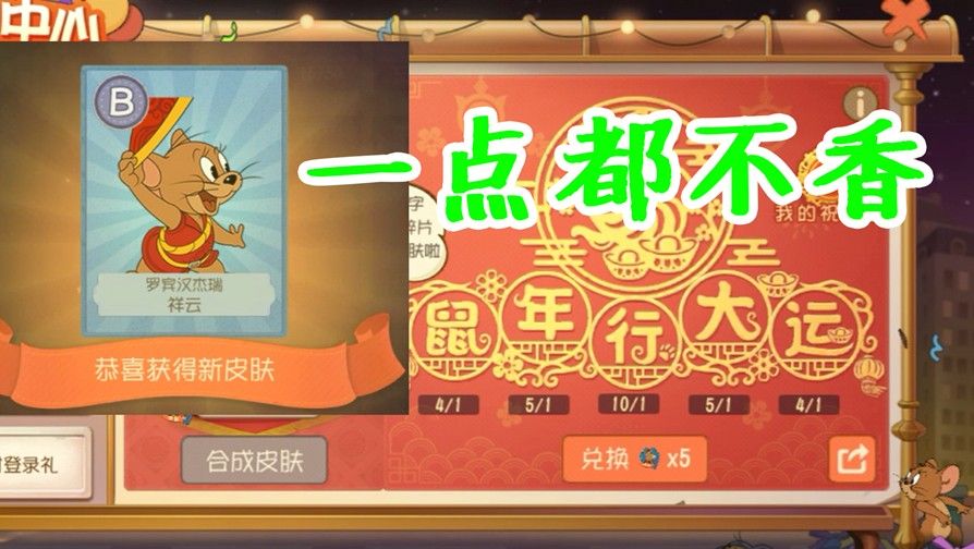 猫和老鼠手游:限定皮肤终于集齐了!鼠年行大运完成!感觉不香了,猫和老鼠手游昨天出来很多活动,除了氪金的那几个,唯独有个不氪金的,这不粉丝们还是很给鸟哥面子的,送了我很多新年祝福,而且就剩一个鼠就集齐了,正好上午的点赞数也够了,咱们去邮件里面去领取一下,这个万能字宝箱直接开个鼠,这个...