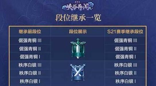 王者荣耀2021赛季段位继承表一览 S22赛季全段位继承表,S21赛季在2020年的尾声结束了。2021年会迎接新的S22赛季。好多玩家非常关心到了新赛季自己的段位会继承到什么等级。会掉多少?下面小编就把官方S22赛季的段位继承机制的全部信息告诉大家,让大家可以轻松的了解更多段位...