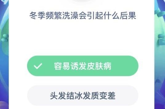 冬季频繁洗澡的危害 冬季洗澡太频繁好不好蚂蚁庄园,冬季洗澡太频繁好不好蚂蚁庄园?冬季频繁洗澡的危害是什么?蚂蚁庄园今天12.16的题目就是关于冬天频繁洗澡类的常识题,有些人特别爱干净,即使是顶着寒冷的冬天也想天天洗澡,那么天天洗澡到底有没有危害呢?跟着小编一起来看看正确...
