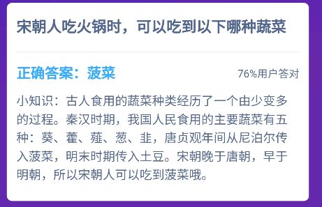 宋朝有土豆还是菠菜 宋代人吃火锅蚂蚁庄园,我国古代的宋朝人民在吃火锅的时候是可以吃到菠菜还是可以吃到土豆呢?这个问题还是相当有难度,这个需要我们去了解,到底是菠菜先传入中国还是土豆先传入中国。小编查阅资料后可以很确定的告诉大家答案。宋朝人吃火锅时,可以吃到以下哪...