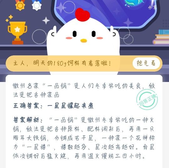 一品锅做法是什么 蚂蚁庄园徽州名菜一品锅答案,蚂蚁庄园徽州一品锅是大家所说的火锅吗?徽州一品锅是很有名的一道菜,不过也有很多人不是特别的了解这道菜的做法,经常吃一品锅的小伙伴,对于庄园课堂今天的答案想必也非常清楚,本站小编这就将一品锅的菜品正确做法的选择分享给大家...