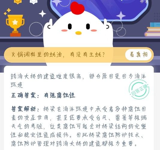 跨海大桥建造难度大的原因是什么 蚂蚁庄园跨海大桥海洋环境的特殊性,蚂蚁庄园跨海高桥在建设的时候会遇到很多困难,那么造成建设困难的原因是什么呢?庄园小课堂今天的这道问题其实给了我们很多的选择空间,关于海洋环境问题的答案选项本站小编在下面也会有详细的介绍。跨海大桥的建造难度很高,部分原因...
