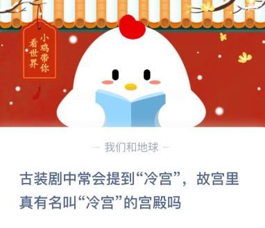 蚂蚁庄园冷宫 蚂蚁庄园今日答案冷宫,蚂蚁庄园12月25日古装剧中常会提到冷宫,那么冷宫这个宫殿究竟是否存在?在故宫中有冷宫吗?看古装剧的时候大家经常会想到这个,冷宫的存在和故宫中是否有,相关的答案解析本站小编会分享在下方,帮助大家了解今日答案。蚂蚁庄园冷...