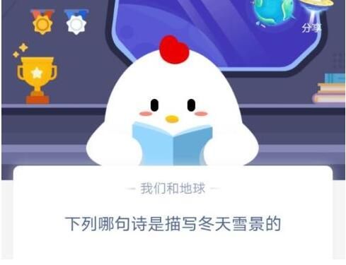 下列那句诗是描写冬天雪景的 蚂蚁庄园冬天雪景,蚂蚁庄园下列那句诗是描写冬天雪景的呢?是大漠沙如雪还是雪尽马蹄轻?这两个选项中虽然都有雪,但是描写的内容差了十万八千里,不少小伙伴看到都有雪不知道选哪个好了。下面小编就把这题目的正确答案来告诉大家。蚂蚁庄园每日答题答案大...