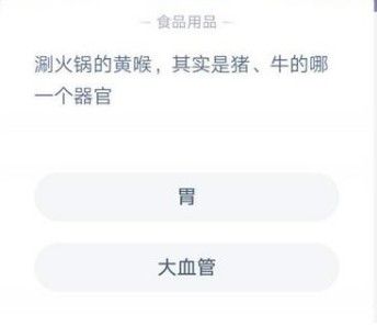 涮火锅的黄喉,其实是猪牛的哪一个器官 蚂蚁庄园今日答案12.7,涮火锅的黄喉,其实是猪、牛的哪一个器官?相信很多小伙伴在吃火锅的时候,都吃过黄喉,但是黄喉到底是什么东西呢,原来它是动物身上的一种器官,尤其是猪、牛身上,那么它到底是哪一种器官呢,下面就来一起看看答案吧!涮火锅的黄喉,其...