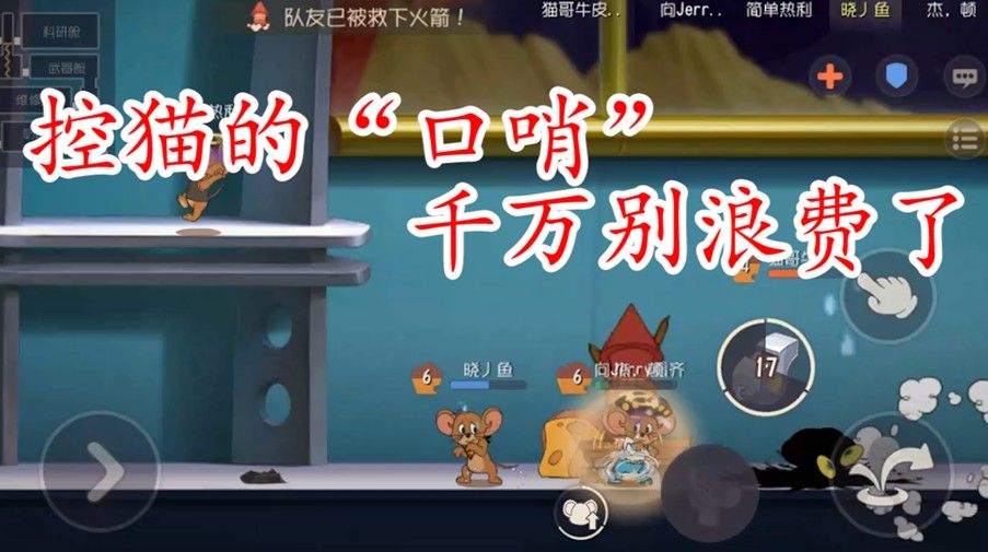 猫和老鼠:太空堡垒,杰瑞口哨的专属地图,鸟哨封路这是硬控呐,猫和老鼠手游继续单排,最近想上钻石,下个赛季马上就开始了,挑战一下。这次竟然是太空堡垒,简直就是福利局啊,要知道太空堡垒有个梯子特别远,加上两边还是自动门,只要放“鸟哨”基本上就在楼梯上面来回循环了,要是猫想上来。。嘿嘿...
