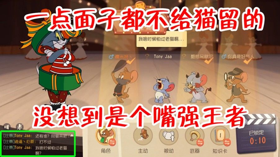 猫和老鼠:泰菲疯狂挑衅汤姆,没想到这么怂,嘴强王者实锤?,猫和老鼠手游这个泰菲好嚣张啊,开始就吸引了一波仇恨,我最喜欢这样的队友了,让猫盯上他我们也能安心推奶酪,侦察阶段泰菲开始疯狂打信号,但是汤姆直接无视他了,这个恶魔身法也挺好的,被汤姆追了那么久也没被打爆。出洞后来盔甲房推...