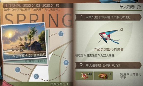 明日之后风筝踏春活动奖励是什么?清明风筝踏春活动攻略,明日之后风筝踏春活动的玩法有哪些?清明节的活动前两天已经开启,在活动中国有很多有趣的玩法,风筝踏春活动的玩法和奖励内容,小编会在下面分享给大家,想要参与这次风筝踏春活动的玩家,赶紧多了解一下下方的活动玩法。明日之后清明风...
