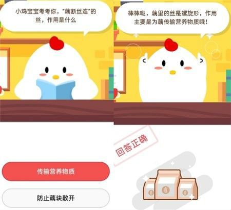 蚂蚁庄园7月17日今日答案是什么?藕断丝连的丝作用答案详解,支付宝的蚂蚁庄园小课堂7月17日带来了全新的问题,想要知道藕断丝连的丝作用是什么?这个题目有两个答案,从选项中其实很快就能辨别出正确的答案,其中有一个选项非常的没有逻辑,正确的答案下面会为大家介绍哦。支付宝蚂蚁庄园7月1...