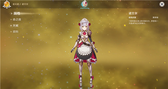 原神蒙德骑士团女仆诺艾尔圣遗物及武器搭配使用什么?原神是一款高自由度动作角色扮演类开放世界游戏。在原神之中,旅行者们在培养诺艾尔的时候可以为诺艾尔准备白影剑作为武器,白影剑可以为诺艾尔提供高额的风原理加成。