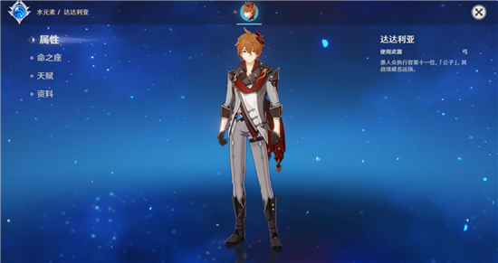 原神愚人众执行官公子达达利亚四星平民武器选择哪个?原神是一款高自由度动作角色扮演类开放世界游戏。在原神之中,达达利亚是至冬愚人众执行官之中的末席,代号公子,拥有水元素的神之眼,使用的武器为弓箭。