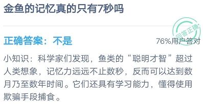 金鱼的记忆真的只有7秒吗?9.12蚂蚁庄园今日答案介绍,蚂蚁庄园9月12日庄园小课堂的问题有哪些?问题的答案是什么?蚂蚁庄园小课堂更新的问题大家都想要知道答案,这次的问题是“金鱼的记忆真的只有7秒吗”,对此不是特别了解的玩家,小编会在下面准备详细的攻略分析。9月12日蚂蚁庄园...
