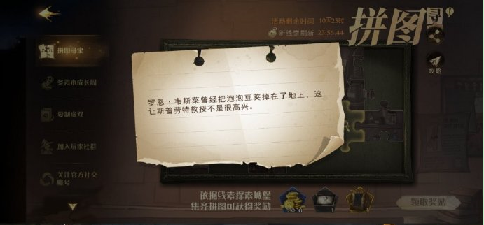 哈利波特魔法觉醒罗恩韦斯莱曾经把泡泡豆荚掉在了地上在哪?罗恩韦斯莱拼图线索位置,哈利波特魔法觉醒“罗恩韦斯莱曾经把泡泡豆荚掉在了地上,这让斯普劳特教授不是很高兴”线索中的位置是什么地方?玩家找到这个线索的位置,就可以获得今天拼图寻宝的碎片了,10.9线索拼图位置本站小编这就为大家分享。哈利波特魔法...