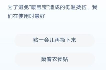 为了避免暖宝宝造成的低温烫伤我们在使用时最好 蚂蚁庄园暖宝宝烫伤,蚂蚁庄园为了避免暖宝宝造成的低温烫伤,我们用暖宝宝的时候应该注意什么?庄园小课堂更新了关于暖宝宝的问题,使用的时候也要了解避免烫伤的危险,下面有本站小编给大家整理的攻略,会详细介绍暖宝宝烫伤这一题的答案。蚂蚁庄园小课堂...