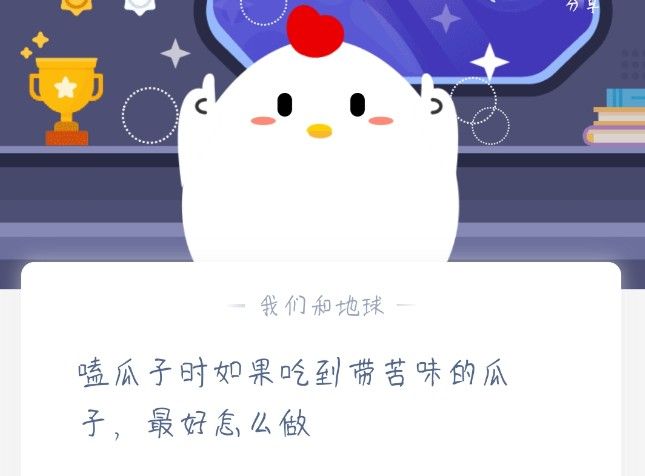 嗑瓜子时吃到苦瓜子 嗑瓜子吃到苦的蚂蚁庄园,蚂蚁庄园1月19日吃瓜子的时候发现有苦味的瓜子,这个时候是要将嘴里的瓜子吐掉还是直接吞下去?嗑瓜子的时候经常会碰到味道很怪的苦味瓜子,庄园小课堂今天的最新问题答案下面可以看一看本站小编带来的攻略。蚂蚁庄园1月19日最新...