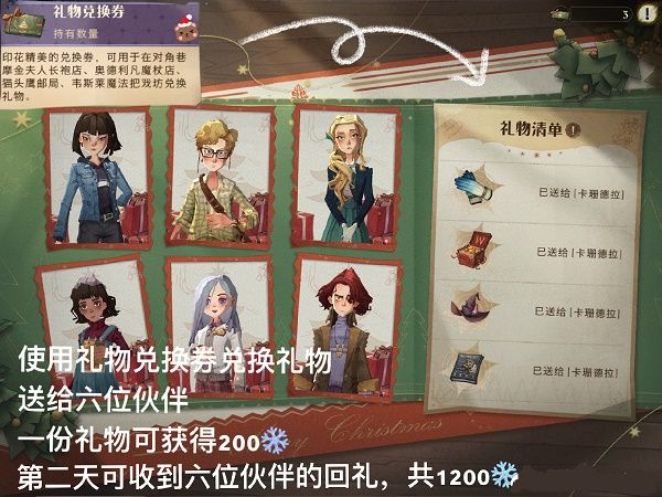 哈利波特魔法觉醒向伙伴赠送礼物攻略:圣诞节NPC送礼清单,哈利波特魔法觉醒向伙伴赠送礼物怎么完成?圣诞活动中,玩家需要向伙伴赠送礼物,完成这个任务之后就可以得到雪花奖励,不知道给NPC赠送什么礼物的玩家,可以查看下面本站小编带来的送礼清单,让玩家快速的完成送礼任务领取奖励。哈...