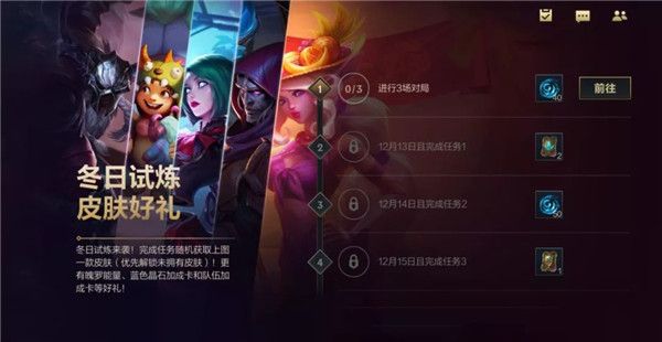 英雄联盟手游冬日试炼活动攻略:lol手游冬日试炼活动玩法解析,英雄联盟手游冬日试炼活动怎么玩?最近出的冬日试炼活动中,玩家需要挑战的任务有很多,完成这些任务就可以获得丰厚奖励了,本站小编会在攻略中带来冬日试炼活动的攻略,详细的活动玩法和任务内容下面都会有说明。英雄联盟手游冬日试炼...
