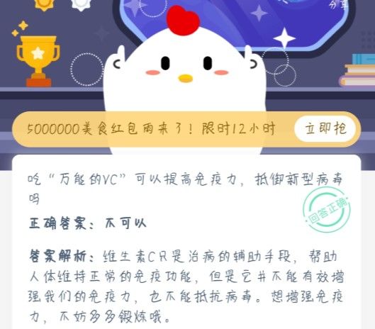 吃万能的维C就可以提高免疫力抵御新型病毒吗 吃万能的VC抵御病毒蚂蚁庄园,蚂蚁庄园吃vc可以提高免疫能力吗?在防护新型病毒期间,其实很多人都会选择吃万能的vc,那么今天我们就来讨论一下吃万能的vc是否可以提高免疫力抵抗新型病毒,本站小编会将这道题的正确选项分享在下面的攻略里面。吃万能的VC可...