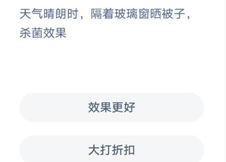 蚂蚁庄园隔着玻璃晒被子 隔着玻璃晒被子有用吗,蚂蚁庄园隔着玻璃晒被子正确答案是什么?蚂蚁庄园隔着玻璃晒被子有用吗?不知道有没有像小编一样的人,只要是出大太阳都想晒被子,会不会有人直接把被子放在床上隔着玻璃窗晒呢?蚂蚁庄园今日课堂题目就是一道非常实用的常识题,一起来看...