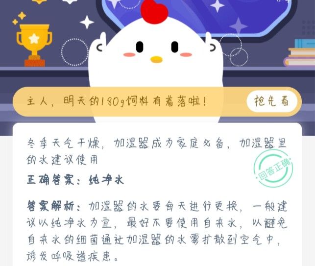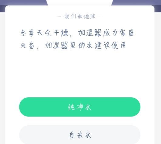 加湿器里的水建议使用什么水 加湿器的水用什么水最好蚂蚁庄园,加湿器里的水建议使用什么水最好?蚂蚁庄园1月4日答题问题是冬季天气干燥加湿器成为家庭必备加湿器里的水建议使用?这个水不能随便加,加错了水对皮肤不好,哪么加哪种水最好呢,小编现在就为各位小仙女介绍正确的答案!蚂蚁庄园每期答...