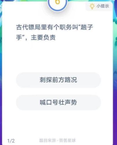 古代镖局的趟子手主要负责什么 古代镖局趟子手是什么意思蚂蚁庄园,古代镖局的趟子手主要负责什么任务?镖局在我国古代是非常流行又十分危险的职业。大到贵重物品小道送一封信全部都可以交给镖局完成。哪么在镖局中的趟子手是干什么的呢?趟子手他有什么作用呢?下面就来为大家介绍一下。蚂蚁庄园每日答题...