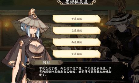 天地劫墨矩机关屋谁是窃贼答案:天地劫幽城再临墨矩机关屋谁是窃贼推理分析,天地劫幽城再临谁才是窃贼?这个窃贼我们需要通过它们四人的聊天对话才能知晓。找到他们说话之间的矛盾点,然后分析出谁拿走了核心。下面就为大家带来详细的答案,让大家可以轻松的完成这次的挑战。天地劫谁是窃贼谜题答案:答案:丁是窃...