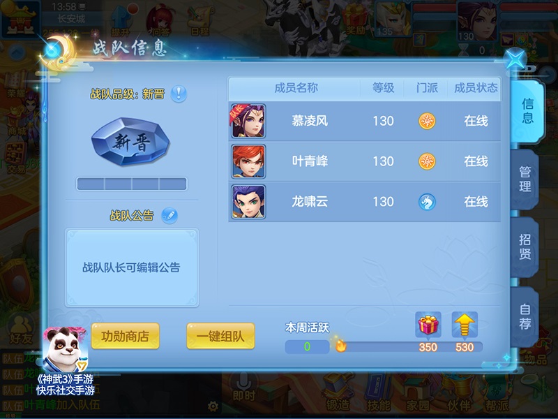 神武3手游战队系统上线!古装头像秀、多元化社交全面来袭,《神武3》手游迎来了特别好玩的“战队系统”,体验过战国系统的小伙伴,就能将更多的快乐融入生活中,邀请你的好友一起进行战斗、成长,多元化的社交玩法超级有趣,下面给大家介绍介绍战队系统的玩法以及其他的一些新玩法。战斗、交友、...