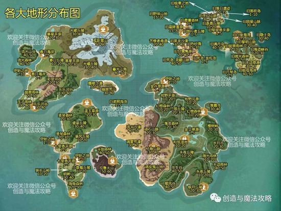 创造与魔法地形分布图:地形、等级分布图大全,创造与魔法地形分布图有哪些?这款游戏中的地图很大,各种板块地形都有,小编这次也为大家带来了各种地形等级的分布图,下面是分布图的具体分享,对地形方面感兴趣的小伙伴可以看一下,在游戏中才不会出现迷路的情况。创造与魔法地形、等...