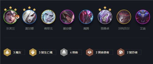 阵容羁绊:3魔女&3复生亡魂&4刺客&2黑夜使者&2复苏者