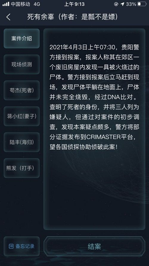 犯罪大师死有余辜答案 死有余辜侦探委托4.3答案解析