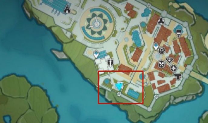 1、歌德大酒店老板位于蒙德城,如下图所示的位置,与老板对话可以打开商店;