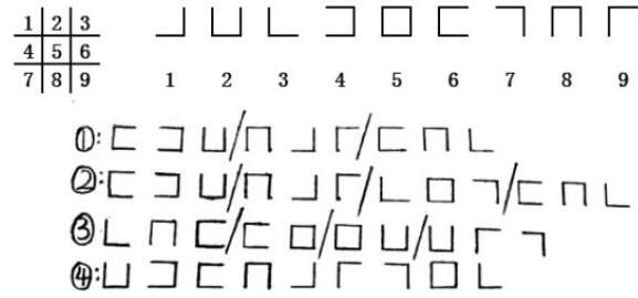 这个很简单,井字棋找位置原先顺序是123456789,找到后在第二个图去找对应数字。