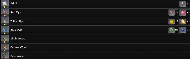 制作「黄色染料」需要用到的材料是「树莓」「石珀」各一个;